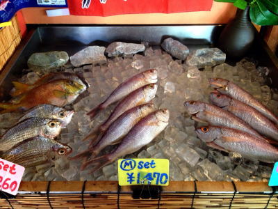 左上:ブダイ 、左下:クルキンマチ 、真中:チン 、右:ガーラ